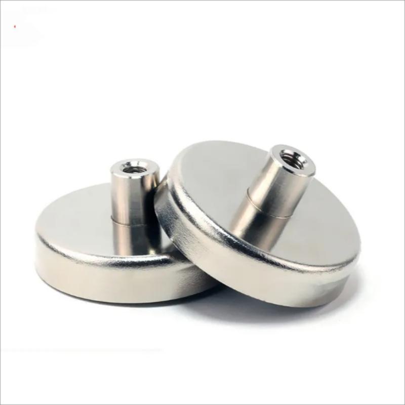 Topfmagnete aus Seltenerd-Neodym Sie bestehen aus hochfesten Neodym-Magneten, die in einem Stahlgehäuse eingeschlossen sind. Dieses Gehäuse konzentriert die Magnetkraft, erhöht die Saugkraft und bietet mechanischen Schutz. Sie finden breite Anwendung in Industrie und Gewerbe zur sicheren und abnehmbaren Befestigung.