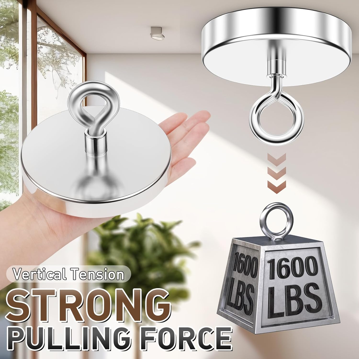 Dieser 120 mm Hakenmagnet bietet eine starke magnetische Zugkraft von 1600 Pfund und eignet sich perfekt zum Magnetangeln, zum Anheben schwerer Metallgegenstände oder zum Bergen von Werkzeugen und Teilen in Werkstätten, Flüssen und Seen.
