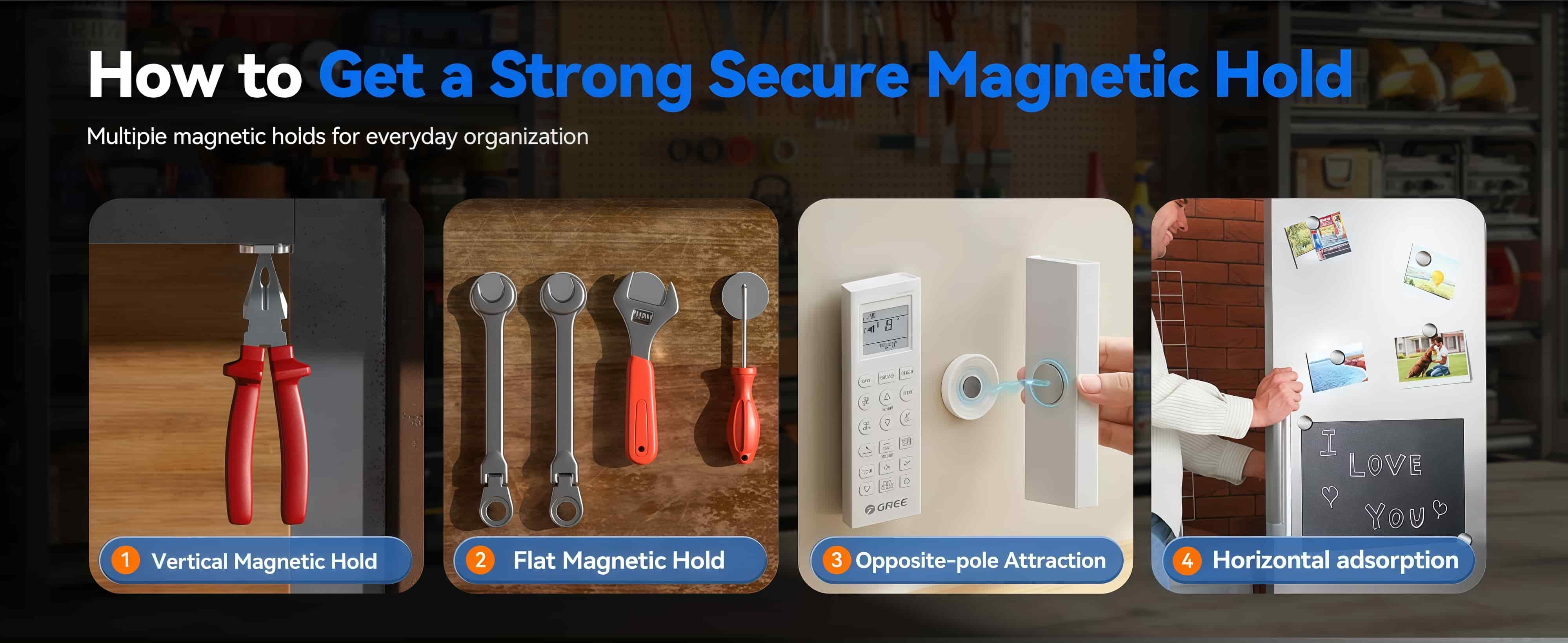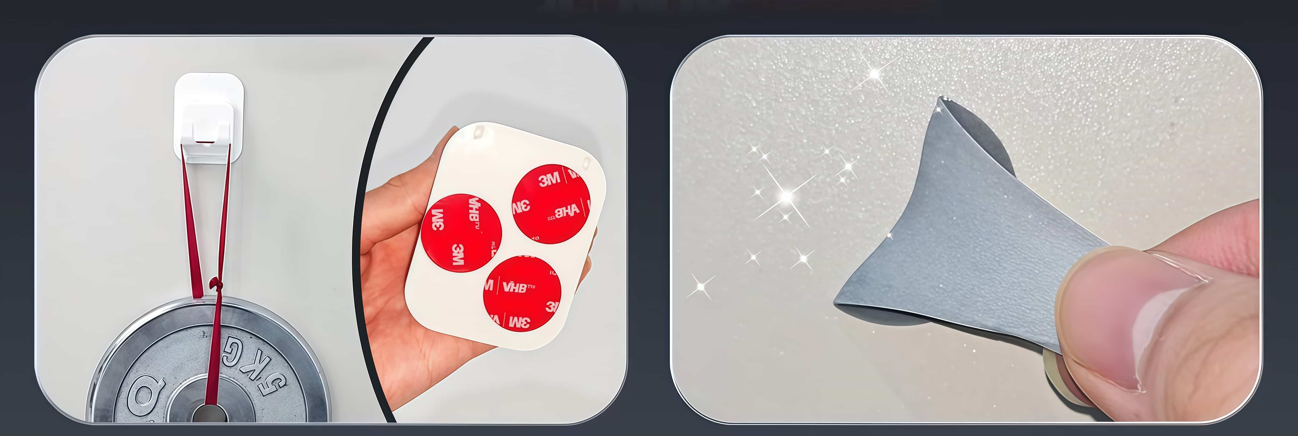 Equipped with 3M VHB double-sided adhesive, it adheres firmly to a variety of surfaces, including metal, glass, plastic, and wood, leaving no sticky residue or damaging the surface after removal. Installation and repositioning are easy and convenient.