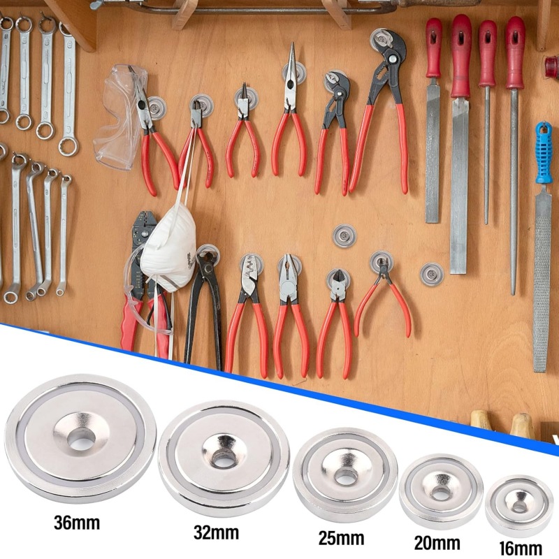 Neodym-Topfmagnete eignen sich perfekt zum Aufhängen und Sichern von Metallgegenständen zu Hause, in der Werkstatt, im Büro, bei Holzbearbeitungsprojekten usw.