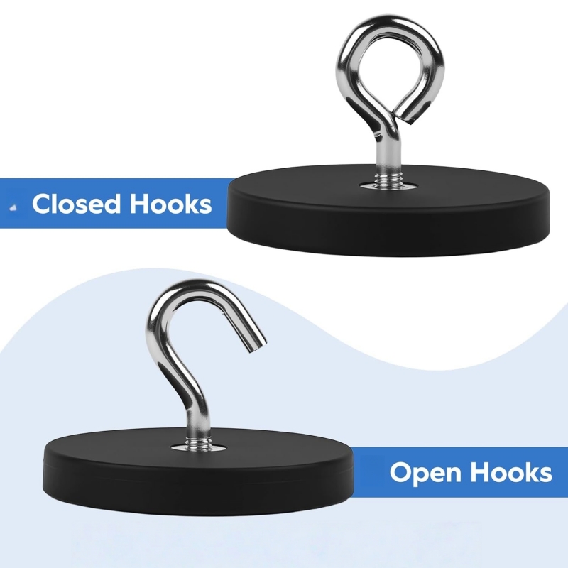 Das Innengewinde-Gummitopfmagnet Es ist mit einer Vielzahl von Zubehörteilen kompatibel, darunter offene und geschlossene Haken, Schrauben, Karabiner und Topfmagnete mit Außengewinde. Durch die Auswahl verschiedener Aufsätze lässt es sich problemlos an unterschiedliche Lastrichtungen und Anwendungsanforderungen anpassen.