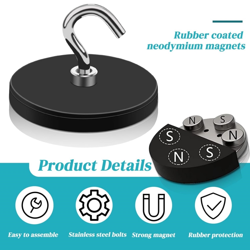 Die Gummibeschichtung schützt empfindliche Oberflächen vor Kratzern und Beschädigungen und erhöht gleichzeitig die Reibung. Dies trägt dazu bei, das Verrutschen zu verringern. runder schwarzer Hakenmagnet während des Gebrauchs, wodurch die Stabilität verbessert und kleinere, während des Gebrauchs entstehende Vibrationen absorbiert werden.