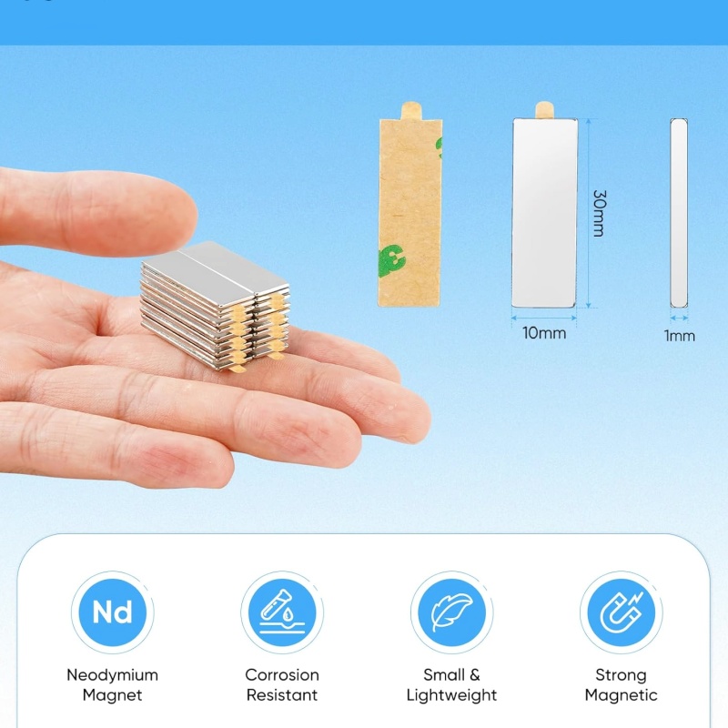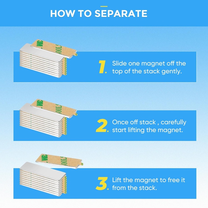 Diese selbstklebende Flachblockmagnete Sie bieten für ihre Größe einen erstaunlich starken Halt. Jeder Magnet verfügt auf einer Seite über eine selbstklebende Folie zur sofortigen Anbringung auf jeder glatten Oberfläche. kleine Blockmagnete aus Neodym paarweise, um zwei Objekte fest und nahtlos miteinander zu verbinden.