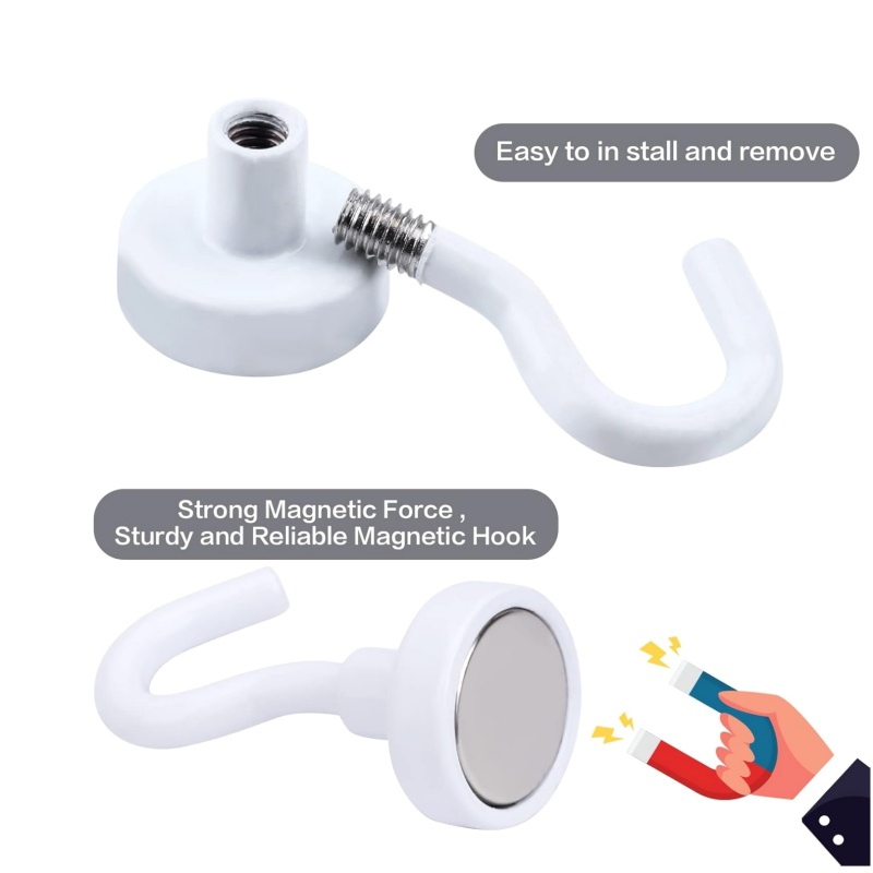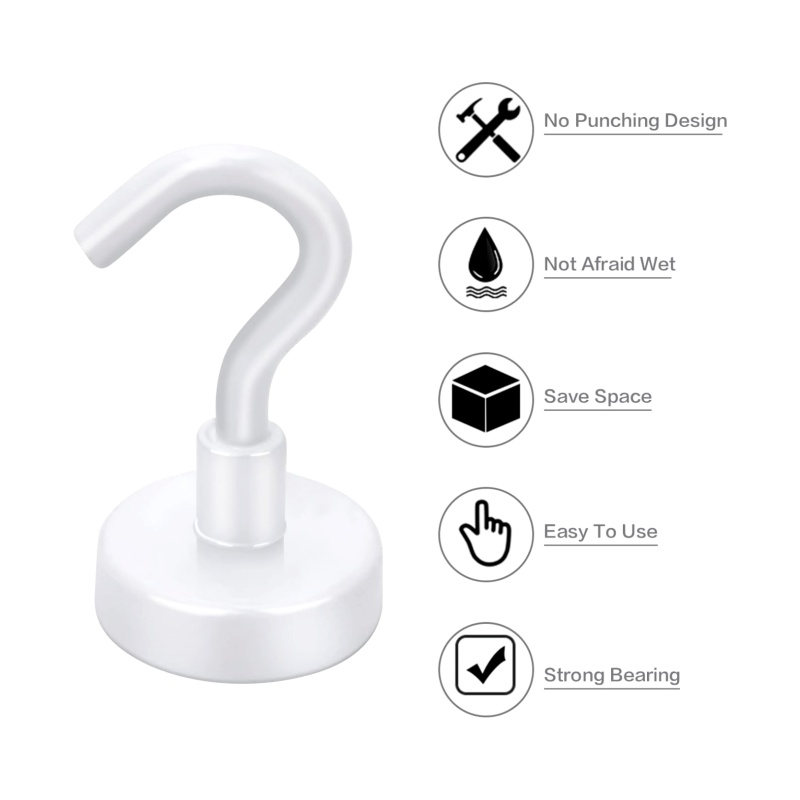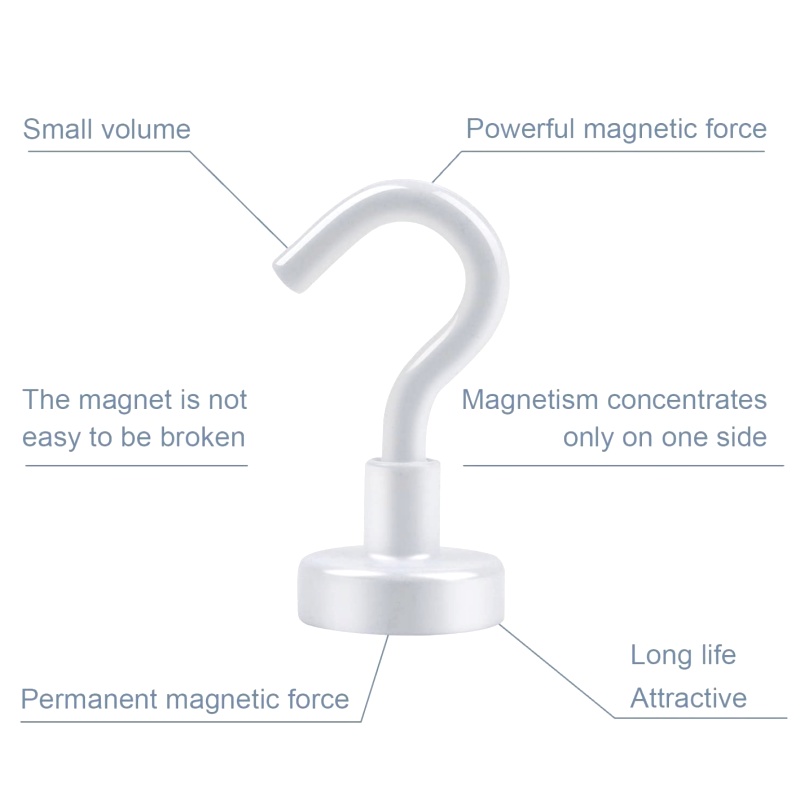 Neodym-Magnethaken sind leistungsstarke Haken mit einem integrierten Neodym-Magneten. Diese Haken haften an jeder ferromagnetischen Oberfläche, wie z. B. Stahl, und halten Gegenstände sicher fest, ohne dass Bohren oder eine dauerhafte Installation erforderlich ist.